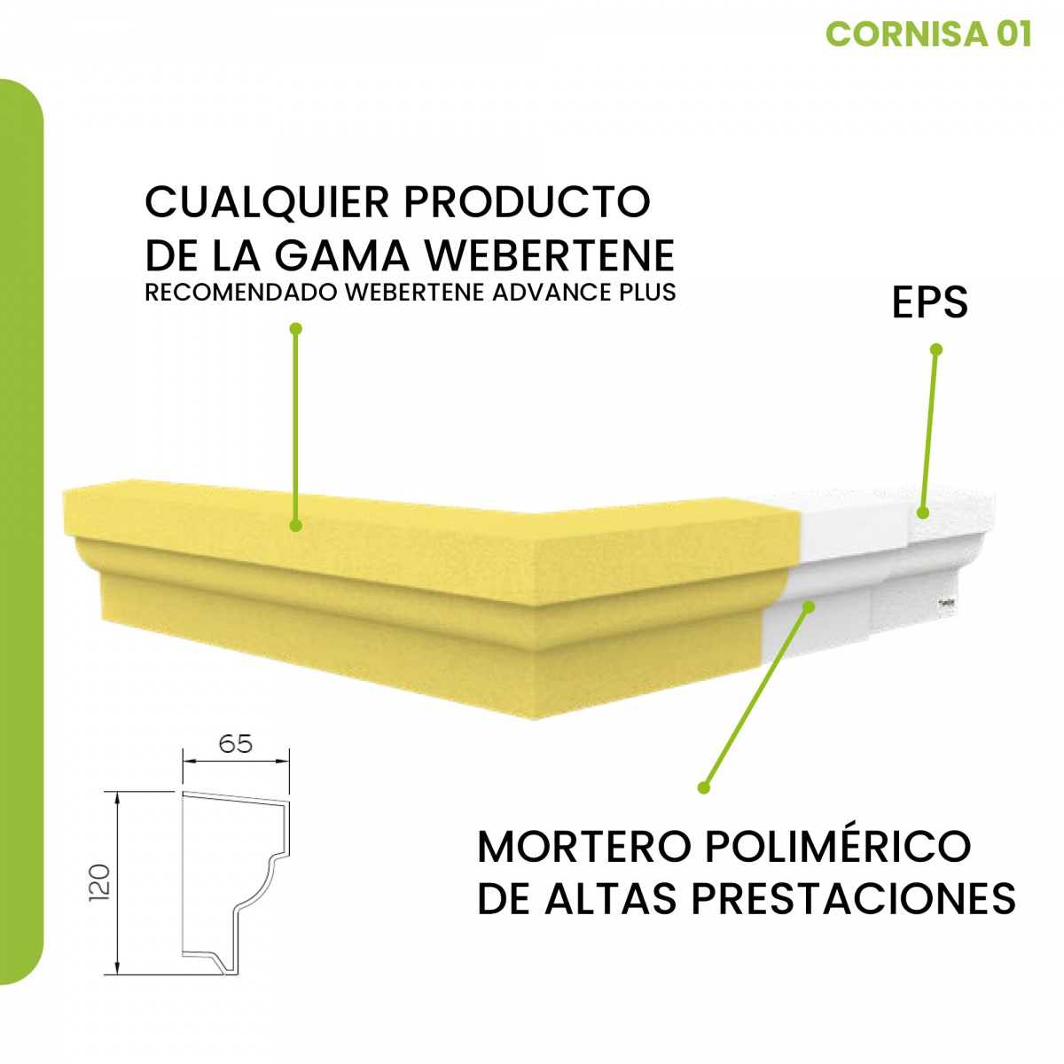 - Para molduras que sobresalgan más de 200 mm de la fachada o que tengan una altura mayor a 200mm, se recomienda anclaje mecánico según se muestra en el apartado “Modo de empleo” de esta Ficha Técnica.